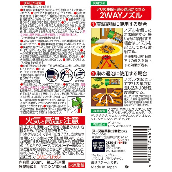 아리아스 W 개미 집도 빠른 구제 스프레이 300ml 아스제약 > 에어로졸