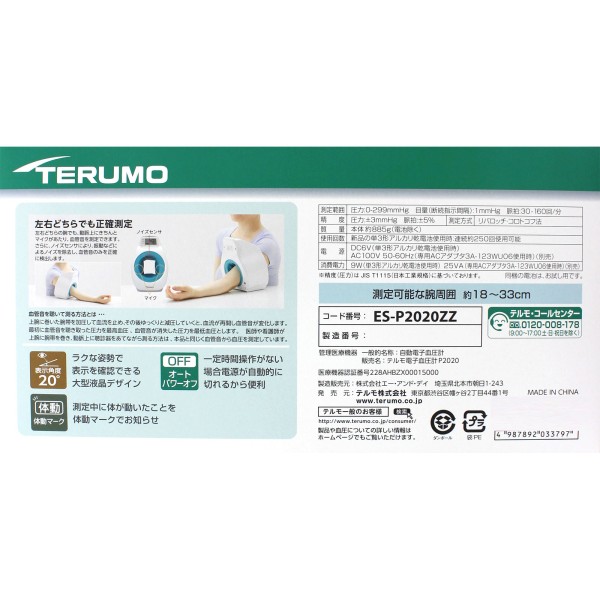 팔에 맞는 혈압계 테루모 전자 혈압계 ES-P2020ZZ 테루모 > 디지털 팔뚝형