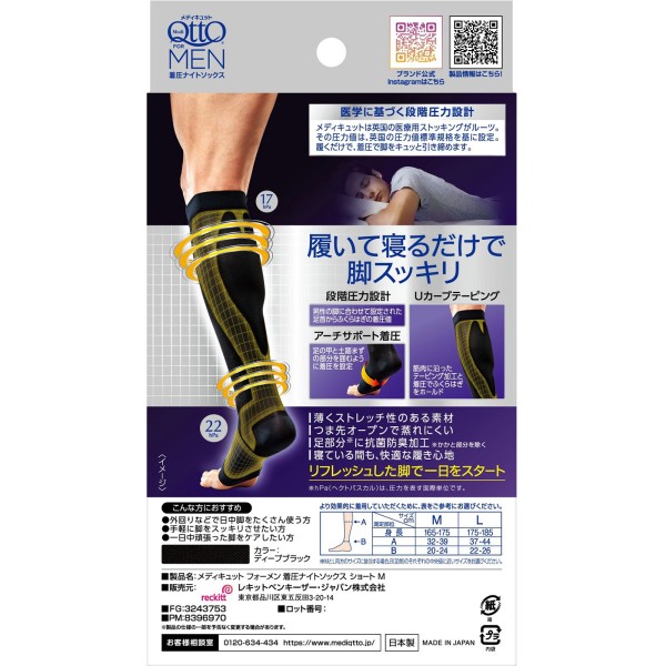 메디큐트 포맨 착압 나이트 양말 숏 1족 M사이즈 레킷벤키저재팬 > 기능성 양말 실외 사용