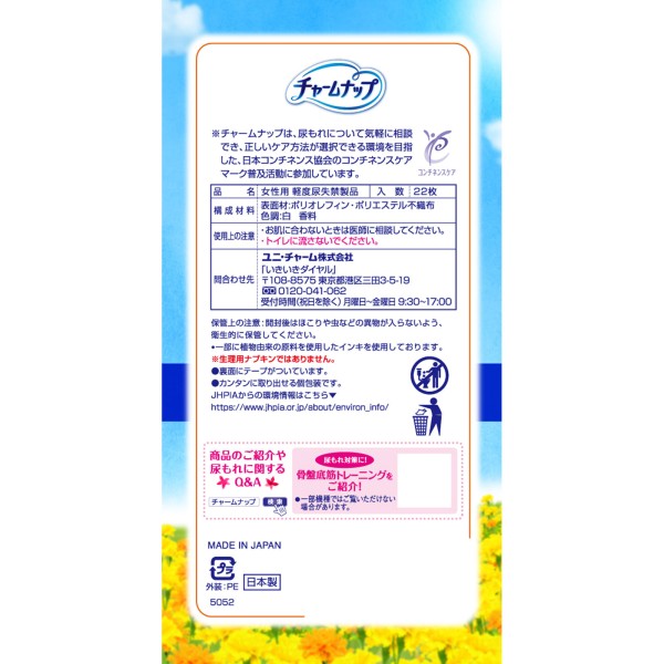 참나프 흡수 상쾌 안심 소량용 22매 유니참 > 참 냅
