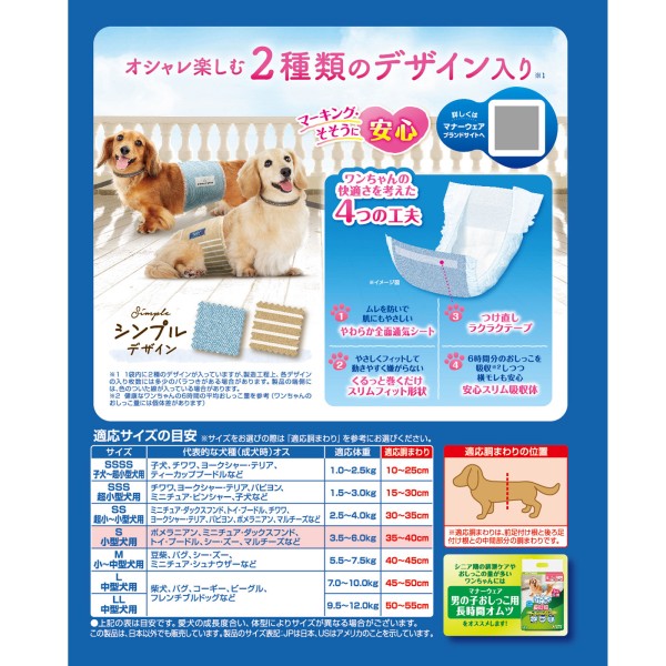 매너웨어 남자아이용 S사이즈 심플디자인 46매 유니참 펫케어 > 생리용