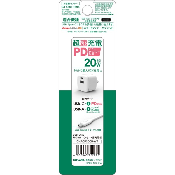 USB-C to C PD20W 콘센트용 충전기 CHACP20CB-WT 탑랜드 > 기타