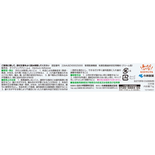 타프그립 크림 75g 고바야시제약 > 틀니 안정제(크림)