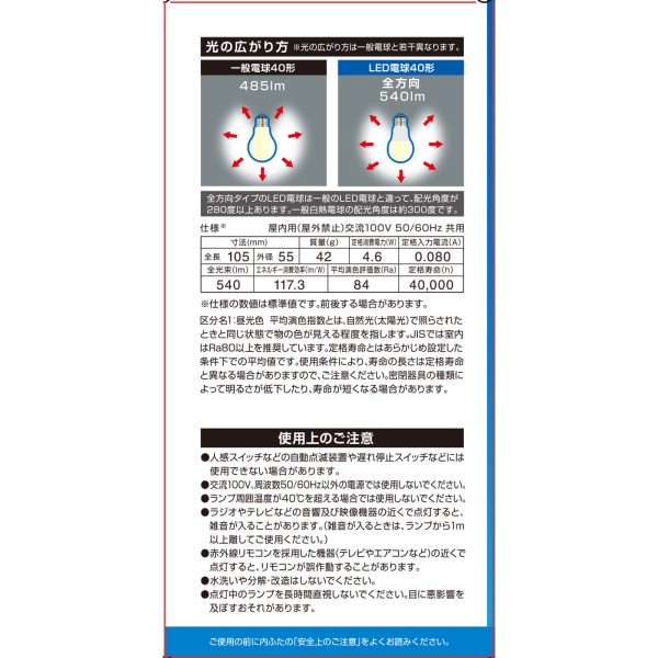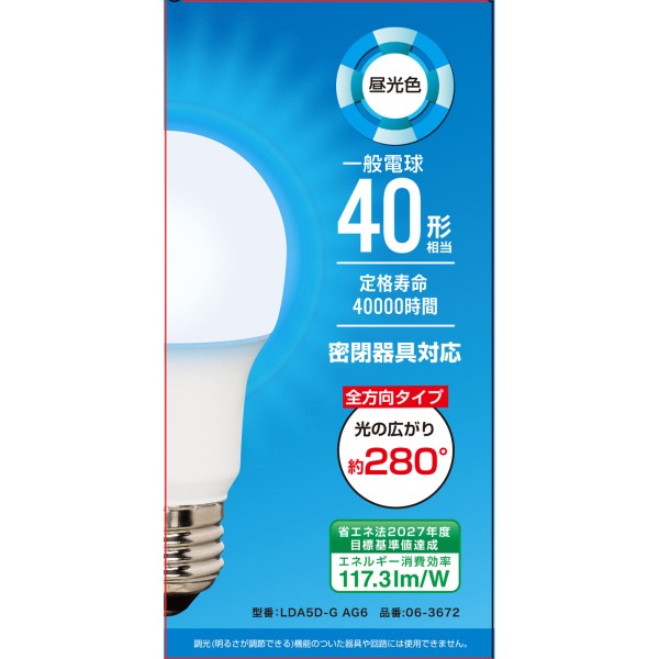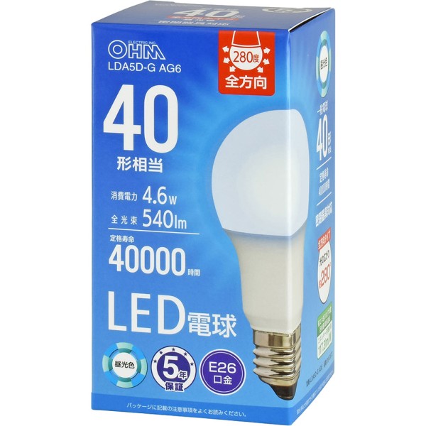 OHM LED전구 전방향 40W형 주광색 옴전기 > LED 전구