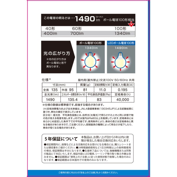 LED 볼전구 100W형 주광색 옴전기 > LED 전구