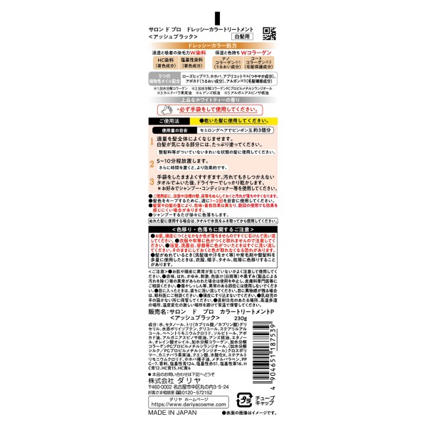 살롱드프로 드레시컬러트리트먼트 애쉬블랙 230g 다리야