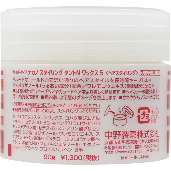 나카노 스타일링 탄트N 왁스 5 90g 나카노제약 > 기타 헤어 왁스