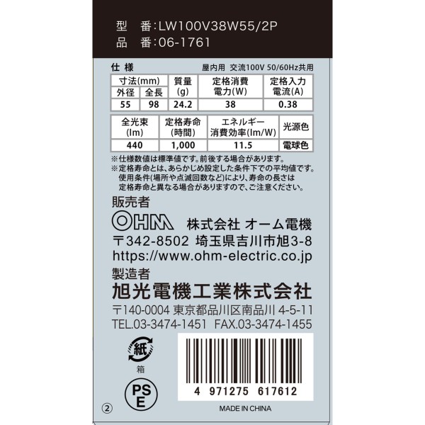 OHM 실리카전구 40W형 2P LW100V38W2PA 옴전기 > 백열전구