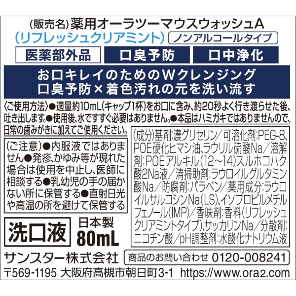 오라투 프리미엄 마우스워시 더블클렌징 리프레쉬 클리어민트 80ml 썬스타 > 구취 예방