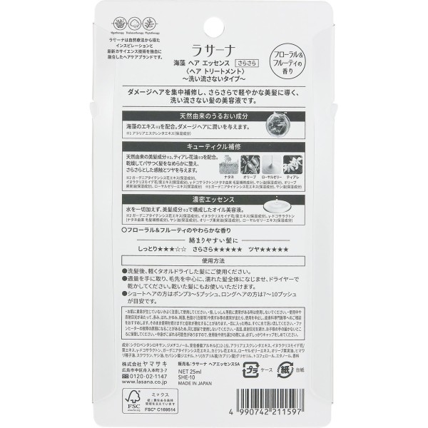 라사나 해초 헤어 에센스 사라사라 25ml 야마사키 > 라사나