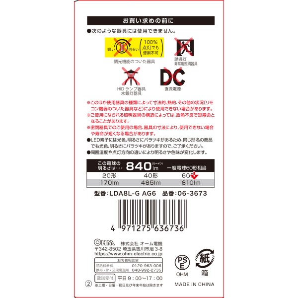 OHM LED전구 전방향 60W형 전구색 옴전기 > LED 전구