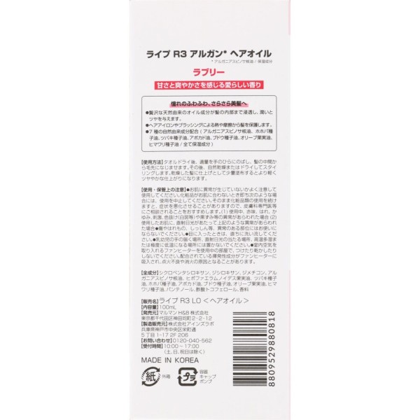 라이프 R3아르간 헤어오일 러블리 100ml 마루만H&B > 기타 헤어 오일·리퀴드