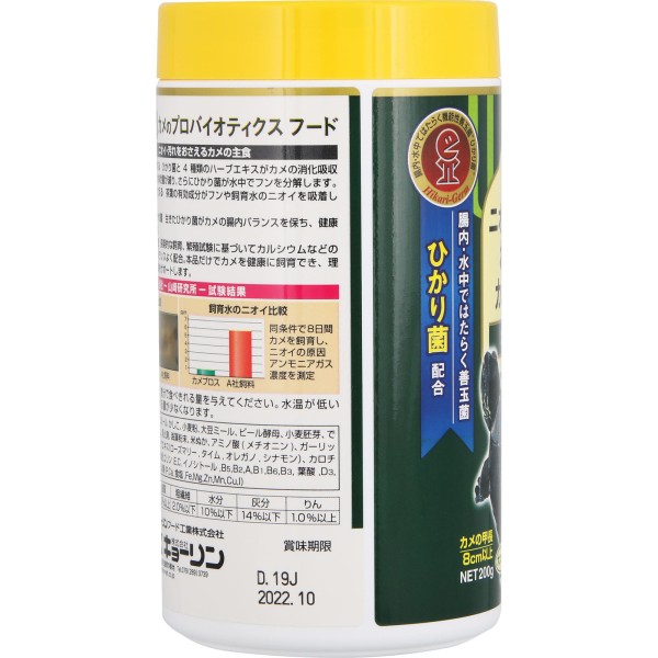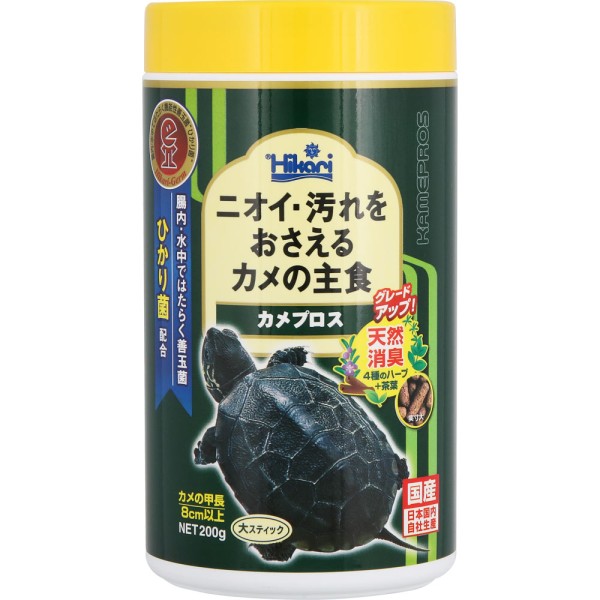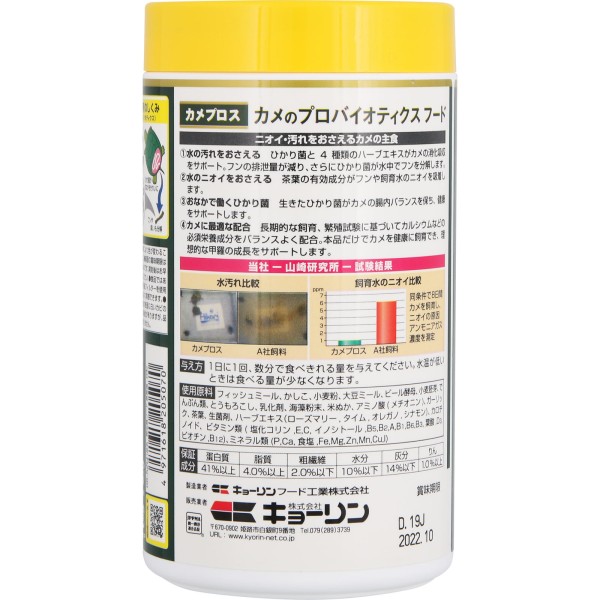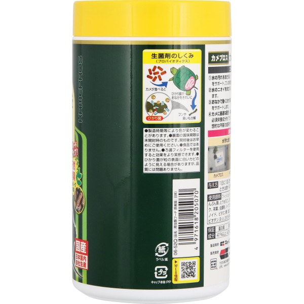 善玉菌と茶葉の効果で水の汚れと臭いを抑えるカメの総合栄養食です。