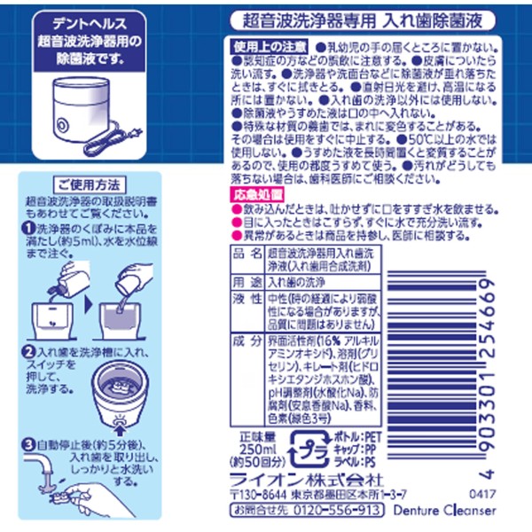 덴트헬스 덴처케어 초음파 틀니 클린제균액 세정제 250ml 라이온 > 기타