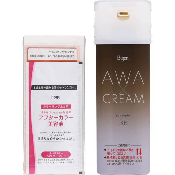 クリームの「染毛力」と泡の「使いやすさ」を兼ね備えたハイブリッド剤。するりと伸びてしっかり密着。新感触のもち泡クリーム。手塗りで簡単。生え際から広範囲までムラなくキレイ。赤みを抑えた色作りで柔らかな髪色に。美しい髪色のために6種のこだわり成分配合・色持ち成分 (タウリン・テアニン)・ツヤ成分※1 (ツバキ油・ヒマワリ油)  ※1 毛髪保護成分 ・うるおい成分 (海藻エキス・海洋コラーゲン※2)  ※2 水溶性コラーゲン液-3。カラー後の髪をケアするアフターカラー美容液付き