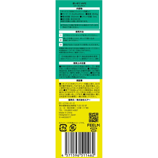 Air mist 쿨레몬 1본 에어 > 금연 용품