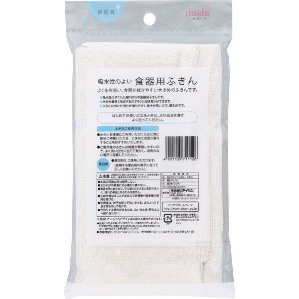 흡수성 좋은 행주 3매입 KFL12 아이센공업 > 코튼