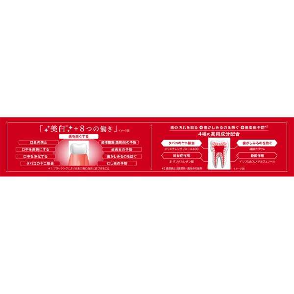 磨くほど白く。4種の薬用成分配合のホワイトニングペースト。美白(*1)・知覚過敏ケア・歯周病ケア(*2)に。