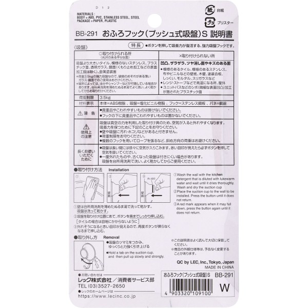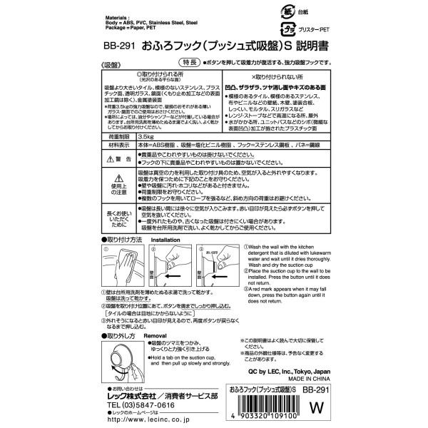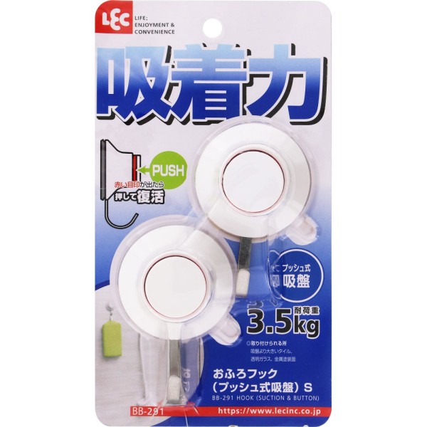 욕실용 훅 푸시식 흡착 S 2개입 레크 > 기타