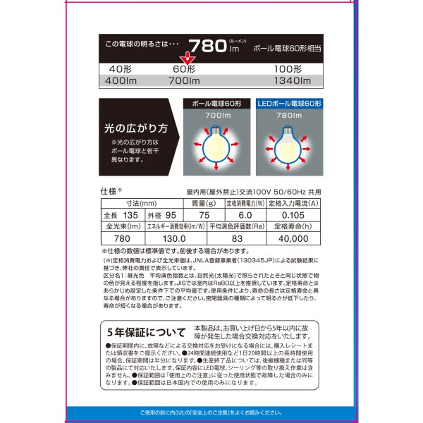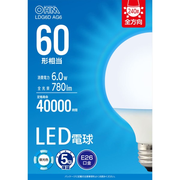 LED 볼전구 60W형 주광색 옴전기 > LED 전구
