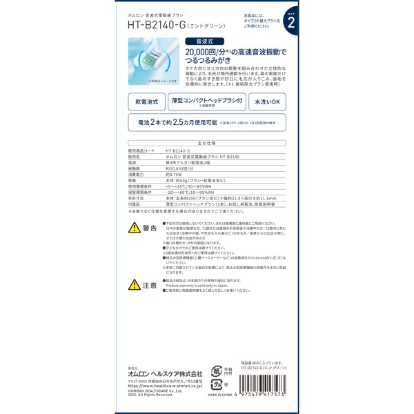 오므론 음파식 전동칫솔 HT-B2140-G 오므론헬스케어 > 전동