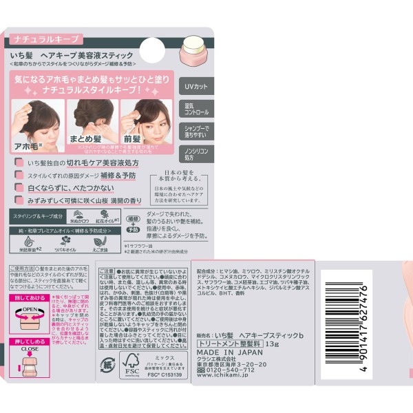 이치카미 헤어킵 미용액 스틱 내추럴킵 13g 크라시에홈프로덕츠