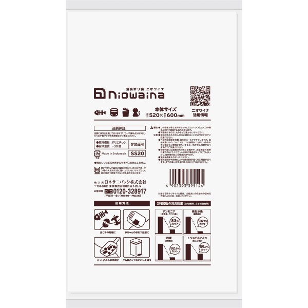 消臭成分を袋にねり込み、悪臭を化学的に消臭。
