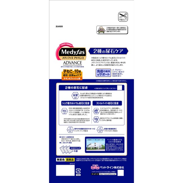 메디파스 어드밴스 2종의 요석케어 새끼고양이부터 10살까지 중성화 후 케어 치킨&피쉬맛 1.25kg 펫라인