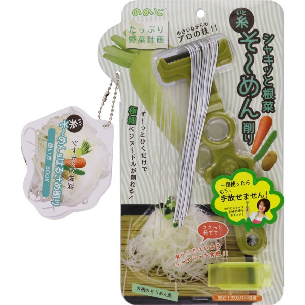 野菜を細長く削り、はるさめやそうめんのように麺状にすることのできるピーラーです。