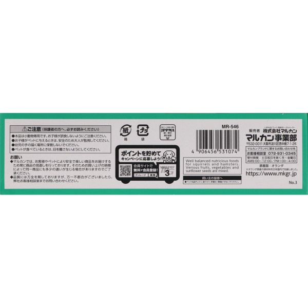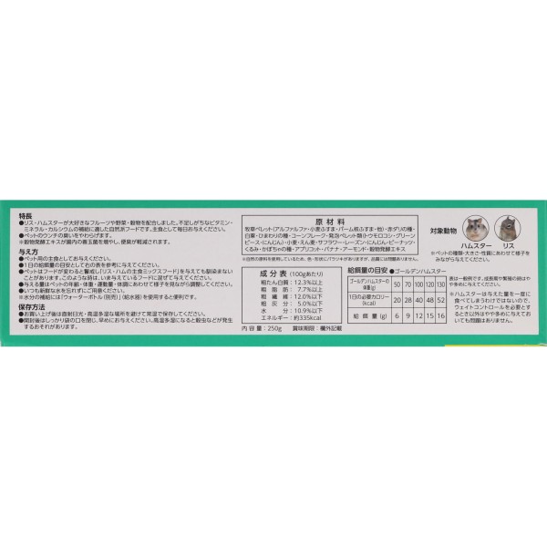 リス・ハムスターが大好きなフルーツや野菜、穀物を配合しました。