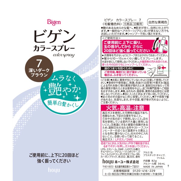 비겐 컬러스프레이 7 자연스러운 흑갈색 125ml 호유 > 백발용 일시 착색료