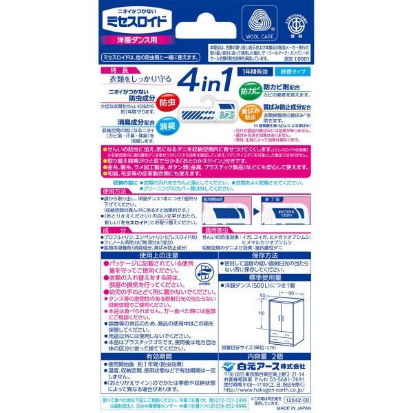 미세스로이드 옷장용 1년 방충 2개 시라모토어스 > 무향 1년용