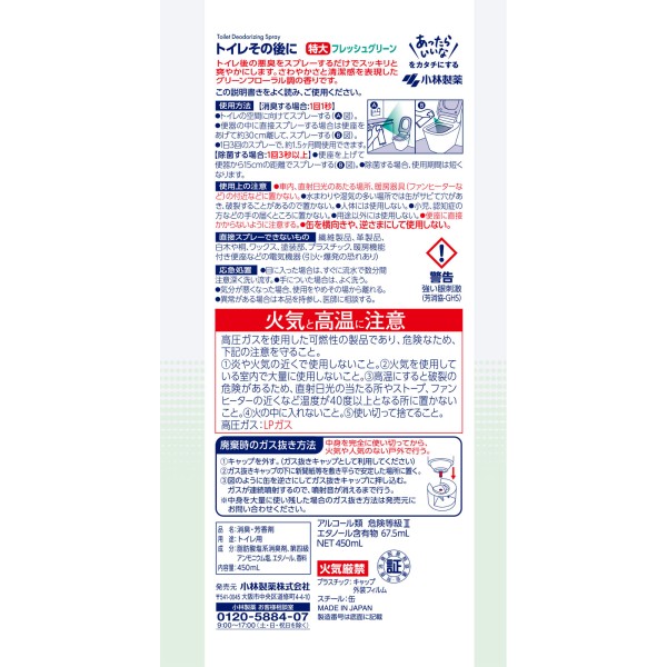 화장실 그 후에 대 프레쉬그린 450ml 고바야시제약 > 스프레이