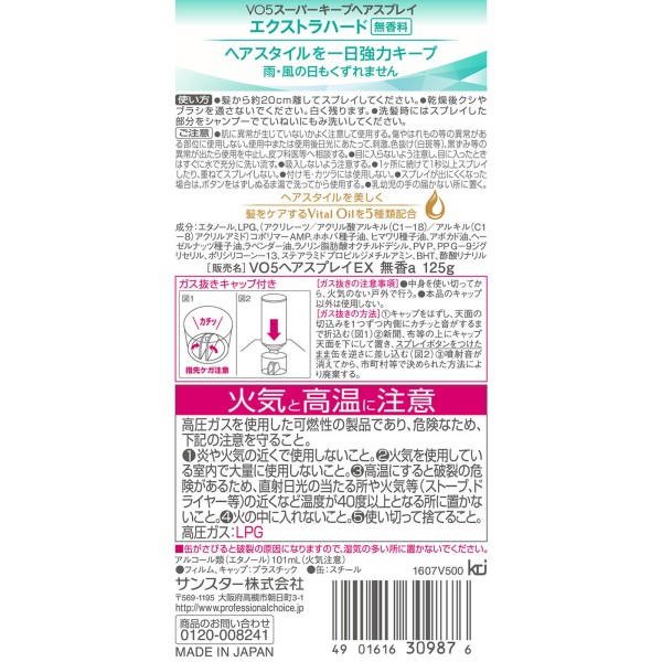 VO5 슈퍼킵 헤어스프레이 (엑스트라하드) 무향 125g 썬스타 > VO5