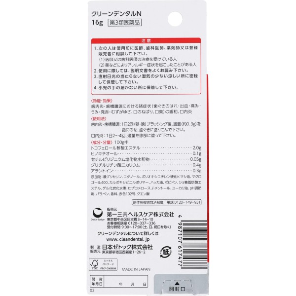 클린 덴탈 바르는 치은염약 16g 다이이치산쿄헬스케어 > 치조농루[의약품]