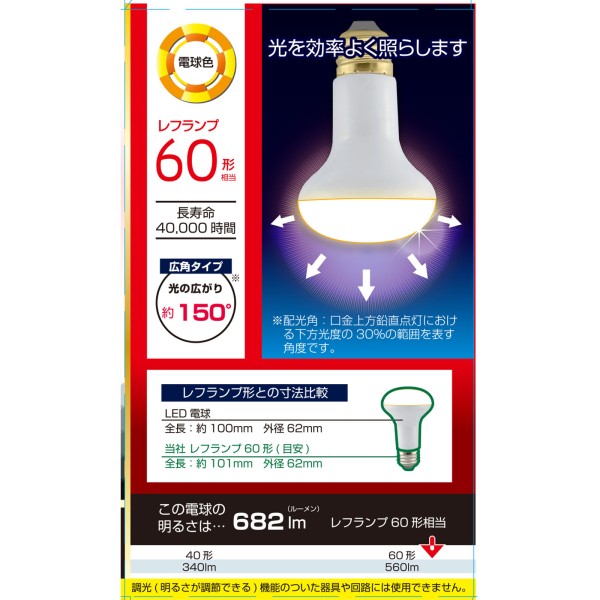 LED전구 레프램프형 60형 E26 전구색 LDR6L-W 옴전기 > LED 전구
