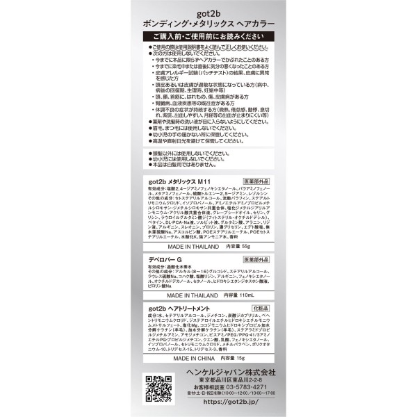 got2b 본딩 메탈릭스 헤어컬러 실버그레이주 55g+110mL+15 헨켈재팬 > 흑발용 헤어 컬러