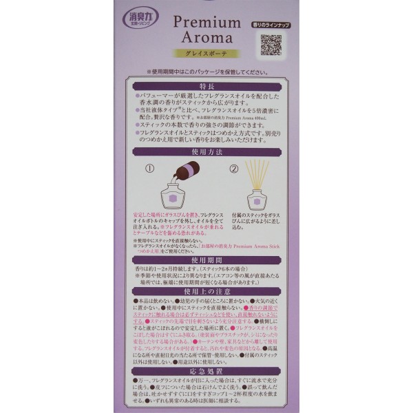현관·거실용 소취력 Premium Aroma Stick 본체 그레이스보테 50ml 에스테 > 스틱