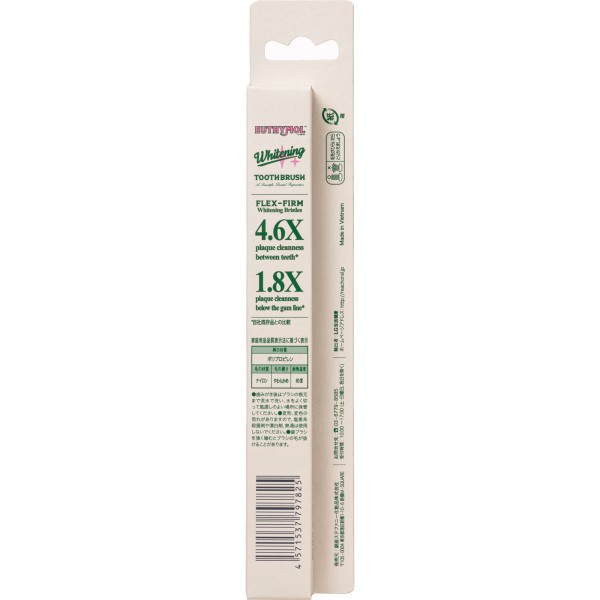 内側の超弾力極細毛と外側のソフト微細毛が歯間の歯垢と歯表面の着色を除去します。ブラシにSHMPを配合。毎日の歯みがきで白く輝く健康な歯へ。