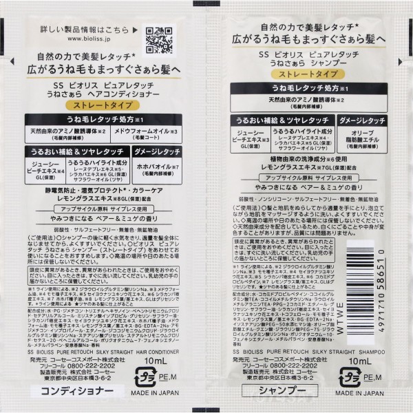 SS 비오리스 퓨어리터치 웨이브스무스 샴푸&헤어컨디셔너 트라이얼세트 10mL×2 코세 코스메포트 > 비오리스