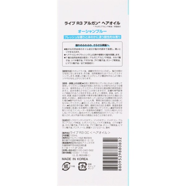 라이프 R3아르간 헤어오일 오션블루 100ml 마루만H&B