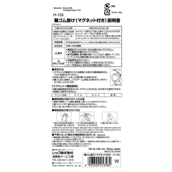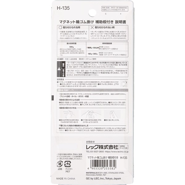 고무줄 걸이(마그넷 부착) H-135 레크 > 주방 범용 훅 (기타)
