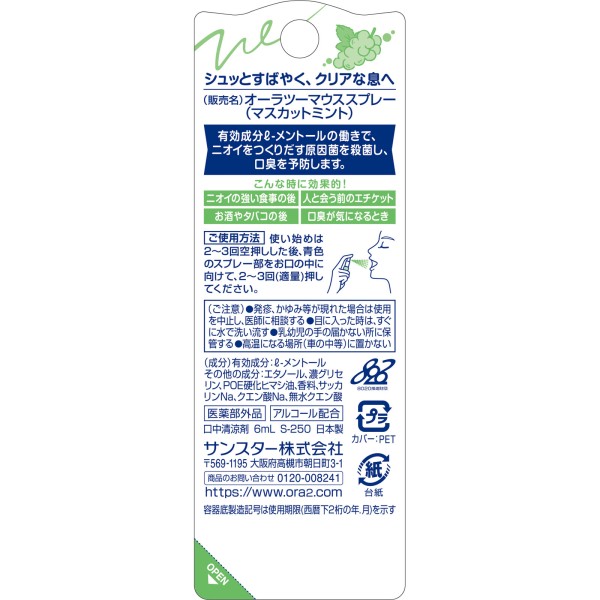 오라2(Ora2) 브레스파인 마우스스프레이 마스캇민트 6ml 썬스타 > 구강 청량액·스프레이