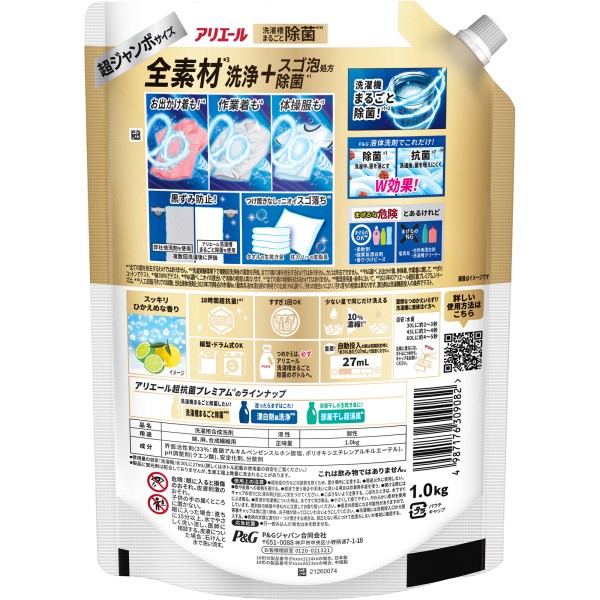 아리엘 젤 제균플러스 초대용량 1000g P&G재팬 > 액체