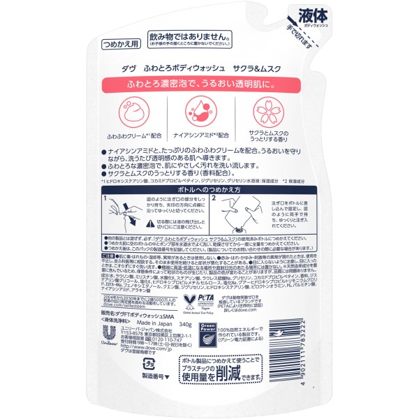 도브 폭신토로 바디워시 사쿠라&무스크 교환용 340g 유니레버재팬 > 범용(다브)