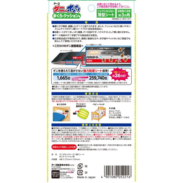 진드기호이호이 진드기포획시트 베개·쿠션용 4매 아스제약 > 포획·구제