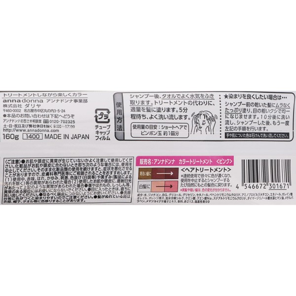 안나돈나 에브리 컬러트리트먼트 핑크 160g 안나돈나 > 흑발용 컬러 트리트먼트