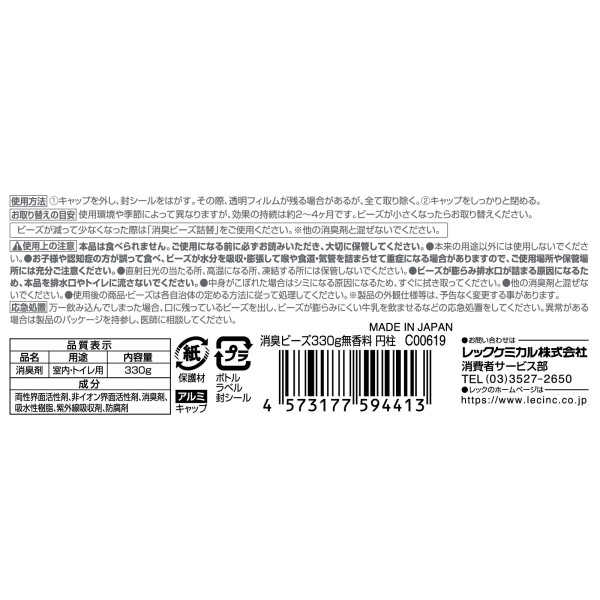 소취비즈 무향료 원통 330g 레크케미컬 > 놓는 타입