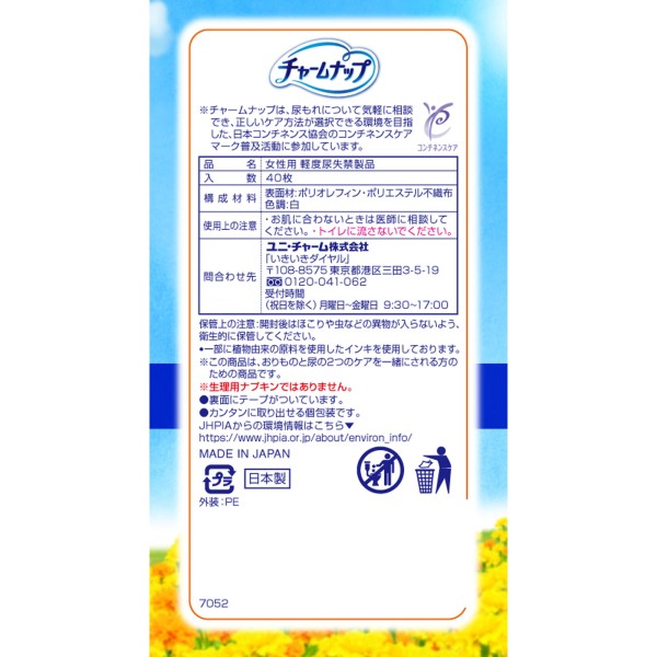 참나프 흡수사라피 팬티라이너 40매 유니참 > 참 냅