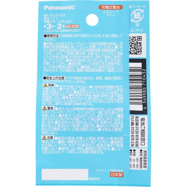 파나소닉 에네루프라이트 AA형 2본입 BK-3LCD/2H 파나소닉